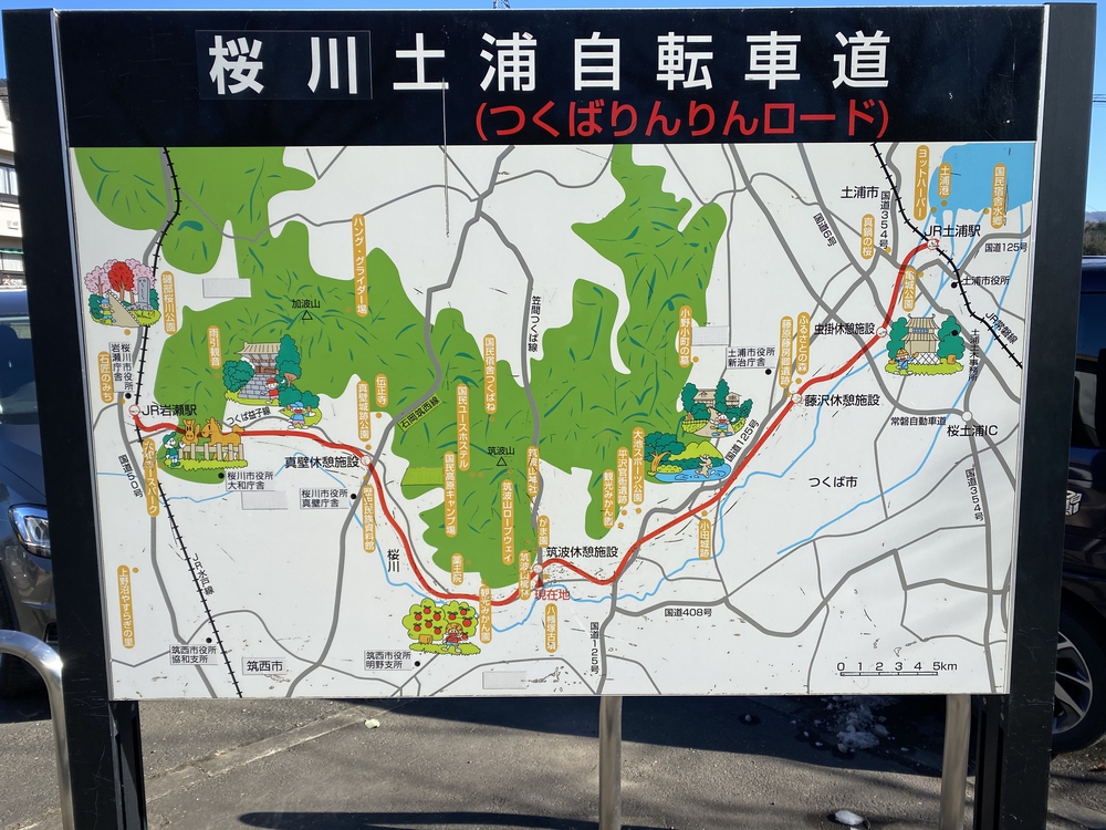土浦駅から自転車専用道りんりんロードを通って往復40kmのコースです。