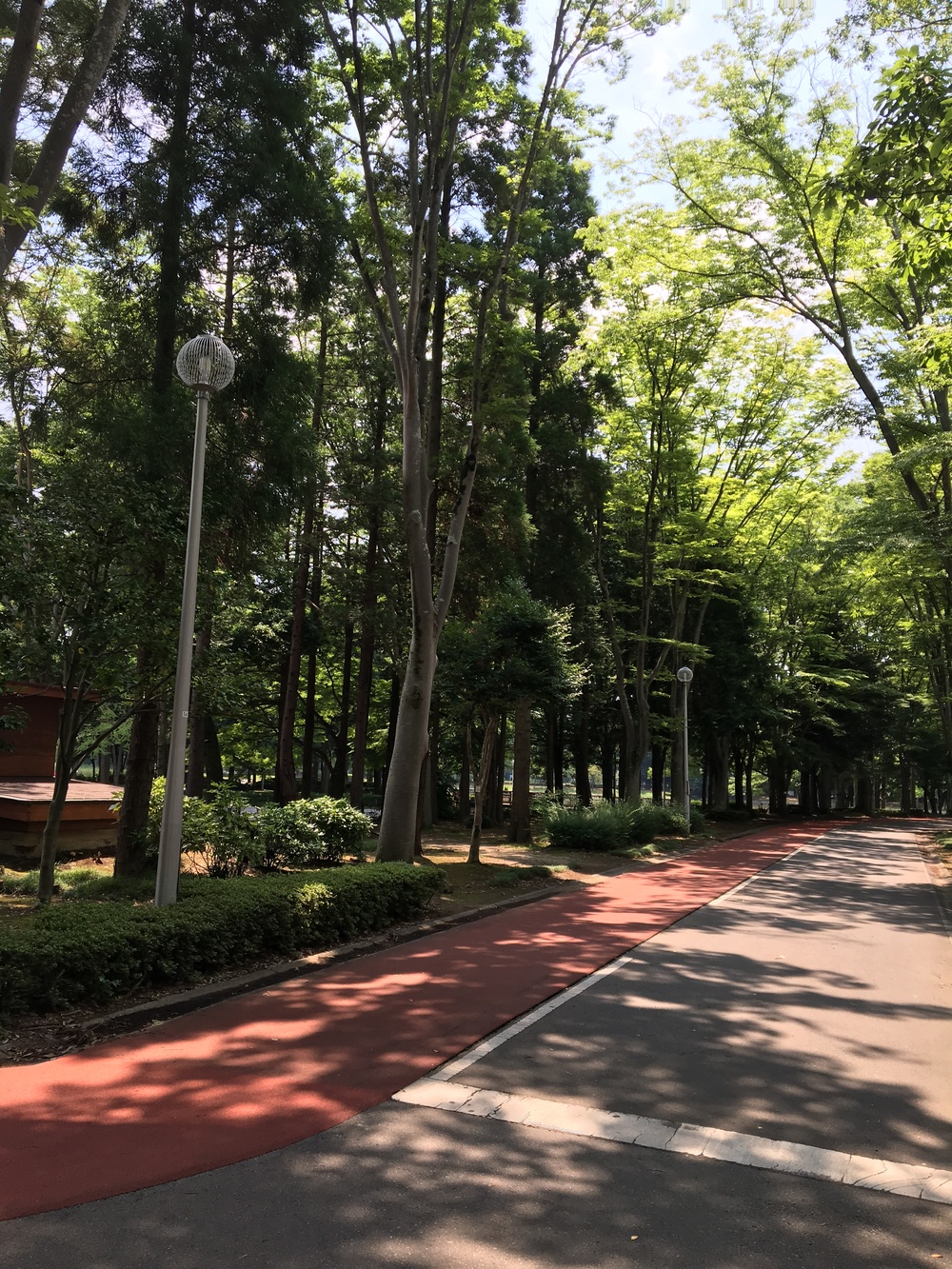 つくばセンター駅からバスで10分、歩道を歩いて20-30分(約3km)、しっかりとした駐車場もあります。公園内にはウォーキング、ジョギングコースがあり、ゴムチップウレタンがしいてあるので走りやすい。外周約1.6km、内周約1kmなので、距離を調整して走ることができます。距離表示も200m毎にあるのでインターバルトレーニングもできてしまいます(迷惑にならないよう人の少ないとき)。