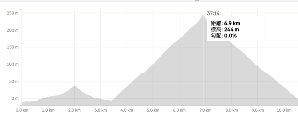 スタート地点からゴール地点までは全長3.77kmの上り坂であり、スタートしてすぐに勾配5〜8%程度の上り坂を進んでいく。ゴール地点は石岡つくば線が分岐点となる地点であるが、その手前の100mだけは勾配が13%とキツくなる。