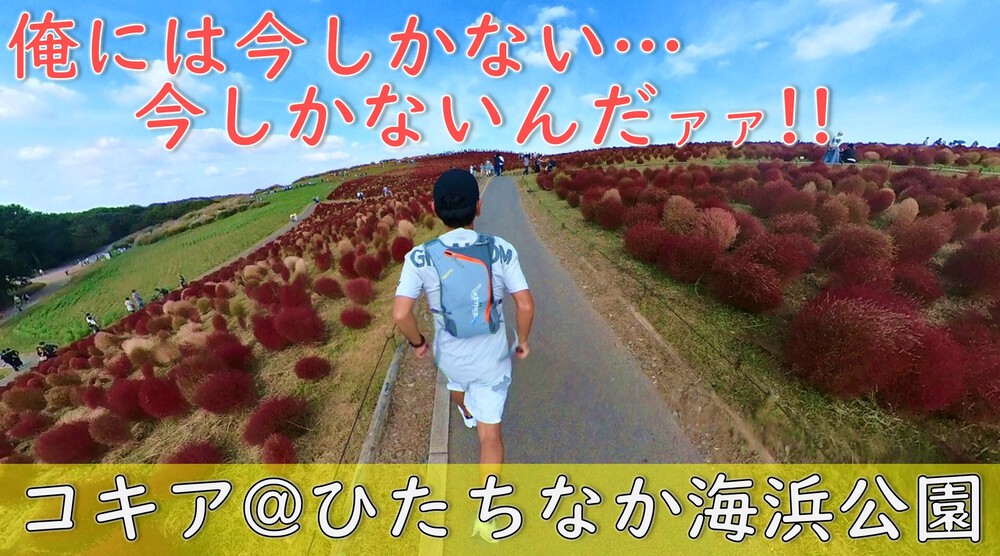 【ひたち海浜公園2023年10月19日】赤く染まるコキアの中でランニングをキメる初秋の平日、ひたち海浜公園