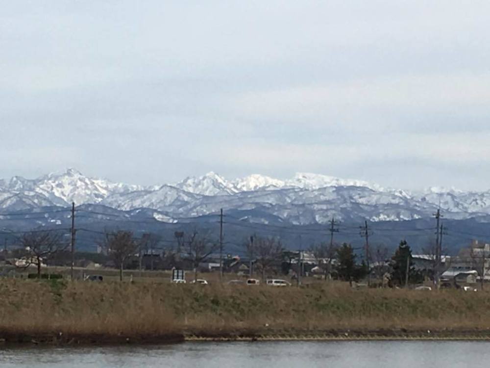しばらく犀川沿いを進みUターンするようにしながら漁港まで行ったら海沿いのコースに出ます。写真のように雪山を見ながら走れるのも気持ち良かったです。