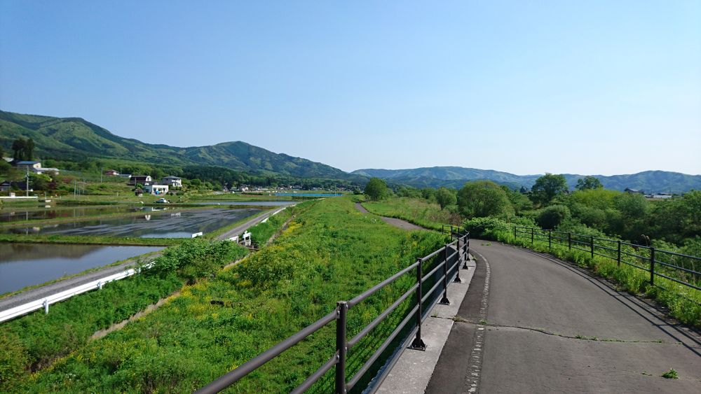 自転車道路は猿ヶ石川沿いの堤防の中に整備されており、外界から切り離されたような騒音の全くない贅沢な空間を走ることができます。