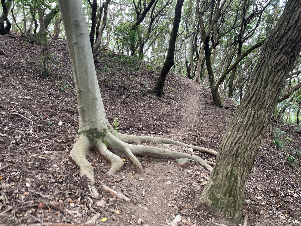 個人的には極上のトレイルルートだと思ってます。是非、御堪能ください。長崎の鼻から本線に合流するあたりは、屋島北嶺(遊鶴亭)に登坂できる登山口への分岐点があります。周回するマラソンルートに戻らずに、トレイルコースへルート替えすることも可能です。