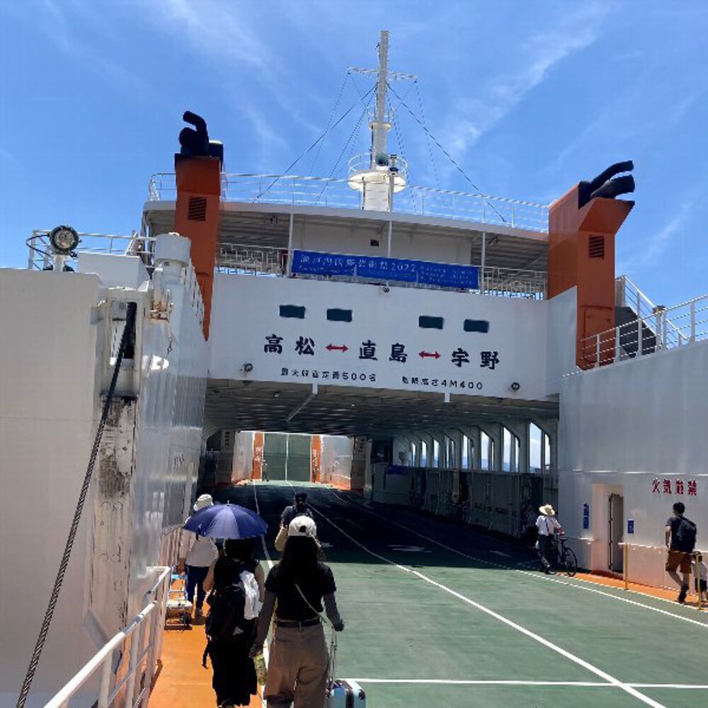 岡山駅でJR瀬戸大橋線・宇野線に乗り換えて宇野駅前から船に乗り瀬戸内海の直島に降り立ちます。