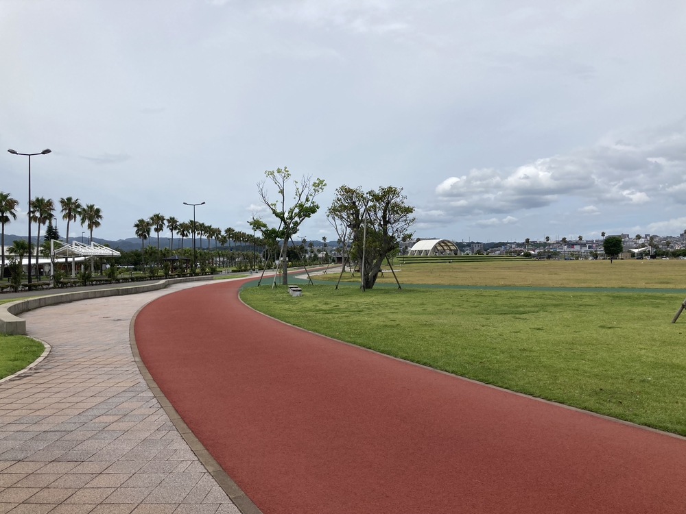 マリンポートかごしまの公園の中にあるランニング、ウォーキングコース