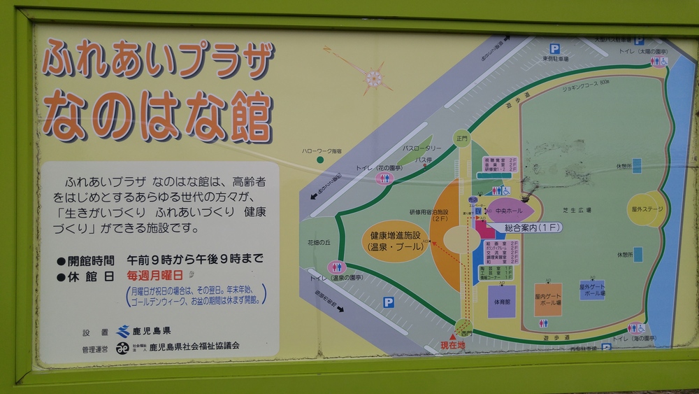 市営体育館・陸上競技場をでて、健幸ロードにそっていくと、なのはな館にたどり着きます。