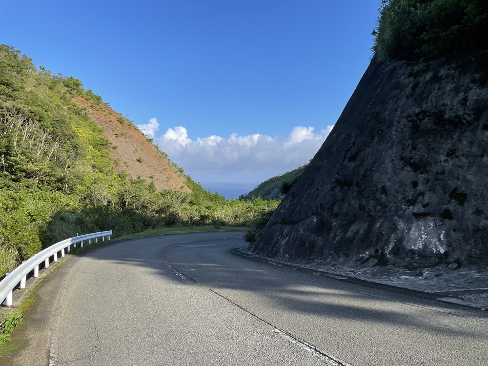 名瀬港から途中迄は平坦な道ですが、大浜海浜公園へ行くまでに山越え200m位があります。朝の涼しい時間帯でのランニングをお勧めします。
