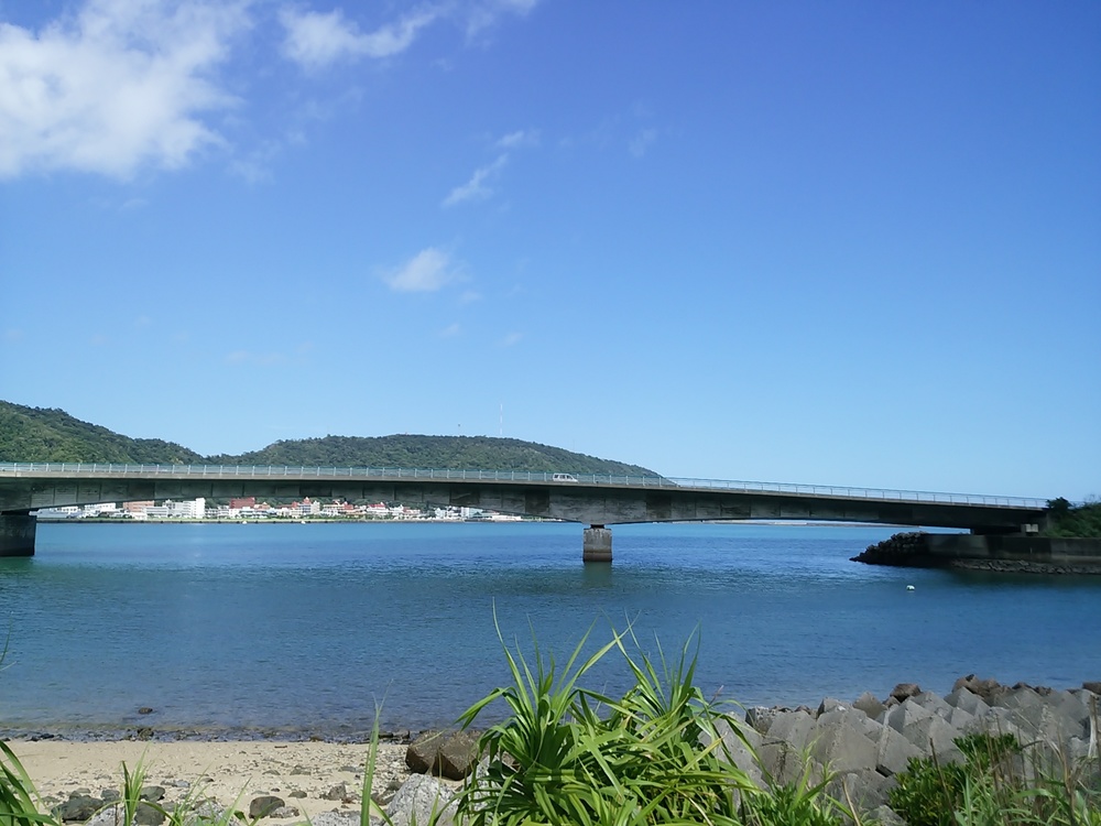 港町を出発し、御殿浜公園〜佐大熊までは臨港大橋を通ると名瀬港から南シナ海が一望できます。