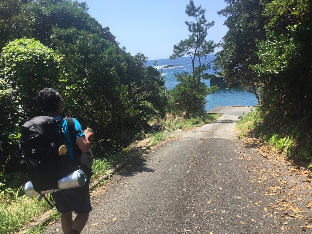 足湯に浸かったり、コーラを飲んで一息つく。そのあとは海に向かう。これで、sea to seaの完遂。