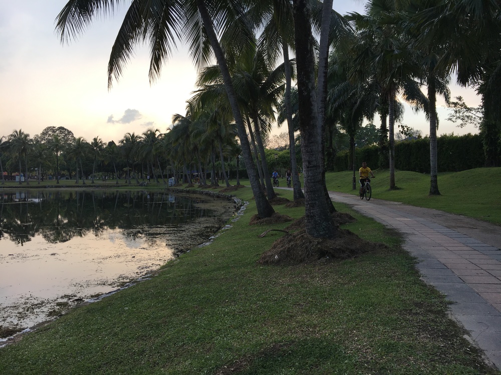 マレーシアの首都クアラルンプールで走りたくなったら、この湖畔のランニングがいいです。一周2.5kmほどの信号がない綺麗なコースです。南国の湖やヤシの風景の向こうにツインタワーやKLタワーが見えます。昼間は暑くてたまらないですが、夕方になるとローカルランナーがたくさん現れてなかなか楽しい。ヒジャブのまま走るムスリムの女性ランナーもいます。ティティワンサ・レークガーデンは、モノレール・ティティワンサ駅または無料バスGOKLブルーライン・Hospital Kuala Lumpurバス停あたりでおります。レークガーデンには、レストラン、貸自転車、ボート、ショートゴルフコース、テニスコートなどがあって健康的にあそべます。