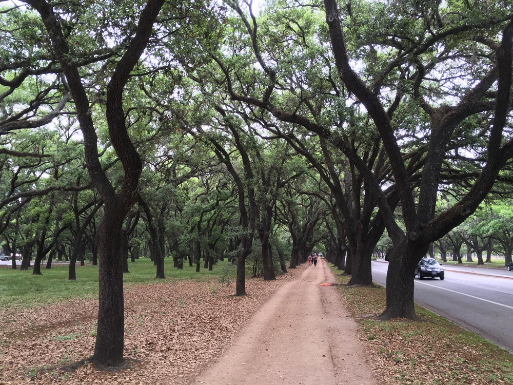 ライス大学、ハーマンパーク、ゴルフ場を巡る約8kmのコース。ライス大学周回で約4km等その日の気分によって距離を自在に変えられます。ライス大学周回は写真の通り土未舗装のランニングコースが整備されており、足に優しく非常に走りやすい。実力派の地元ランナーも走っています。ハーマンパークコースは緑の中ゴルフ場を縫って走りるコースで非常に気持ち良い。