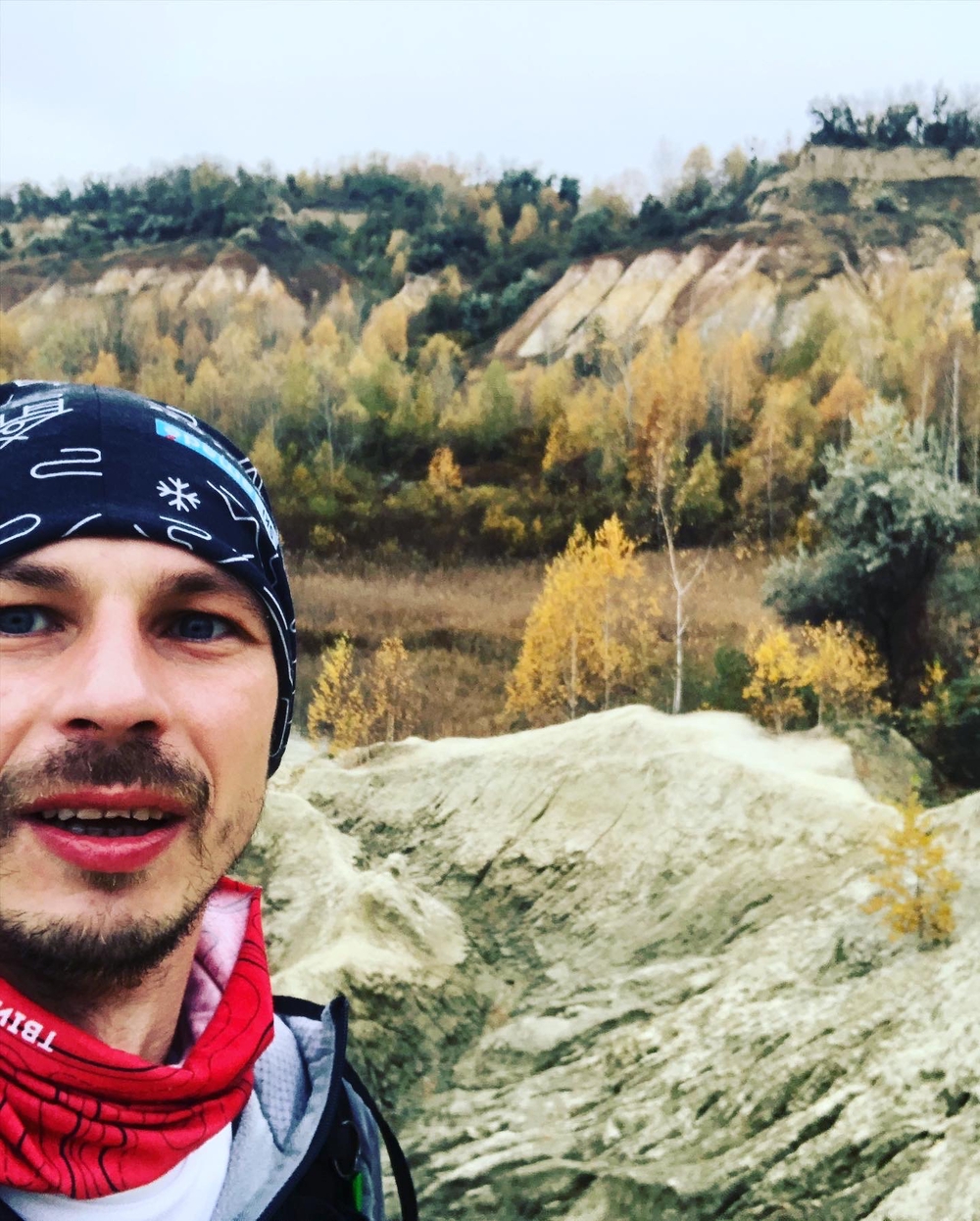Jogging on the cliffs of the Dnipro, near the town of Trypillya near Kyiv. The Trail route is quite interesting as it takes place in autumn, which allows you to admire the magnificent beauty of the surrounding trees
