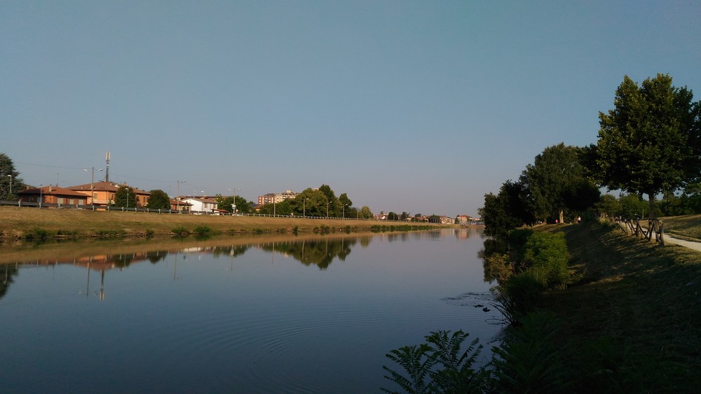 南下して,川に出たところで東に折れ曲がって少し広めの川沿いを走ります(3km地点付近)。周りは郊外の風景が広がり,気持ちよく走れますが,しばらくは木陰がないので,夏は暑いです。