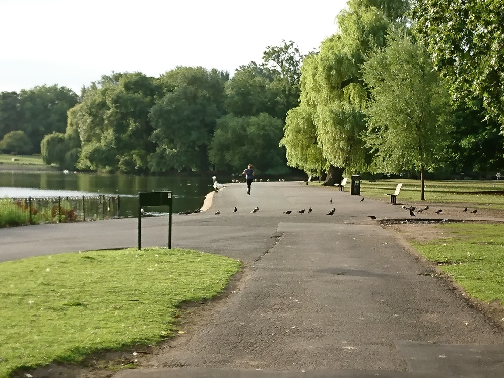 都会のオアシス。広い公園で、幾重も散歩道があり、好きに選べる。道もそれなりに広い。昼間は人が多そうなので、早朝がお薦め。