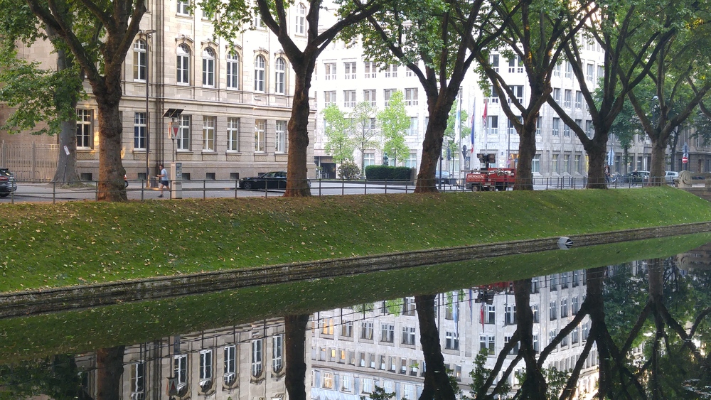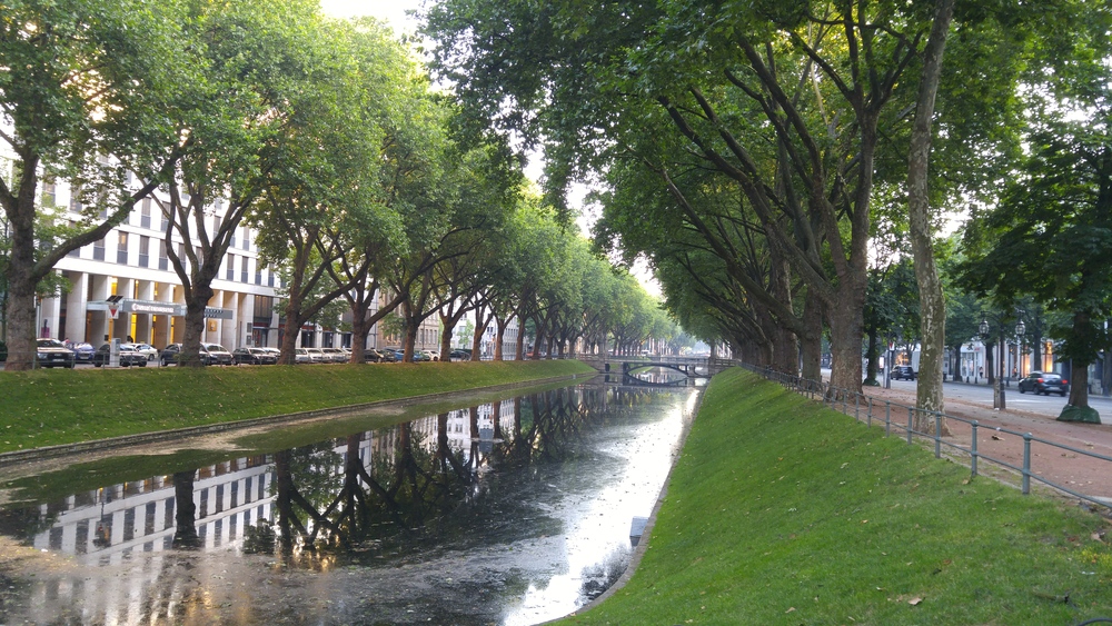 デュッセルドルフの顔ともいわれる美しい並木道ケーニヒスアレーを抜け、ライン川を渡って、対岸の町二ーダーカッセルののどかな街並みをのんびり走るコースです。デュッセルドルフの対岸は、静かな住宅街と日本企業などのオフィスがある地区で、走った朝の時間帯にはアジア人の子供たちが学校に登校していく姿がたくさん。耳に入ってくる言葉の多くは日本語で、この地域がドイツだけでなくヨーロッパで最も日本人が多い場所と言われるのも納得です。オフィス街を抜ける時には、日本人には見慣れた企業の名前を多数見かけました。