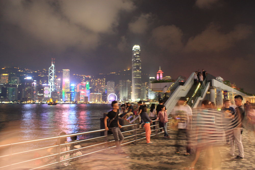 香港はチムサーチョイ (Tsim Sha Tsui)のAvenue of Stars (星光大道)からの100万ドルの夜景です。