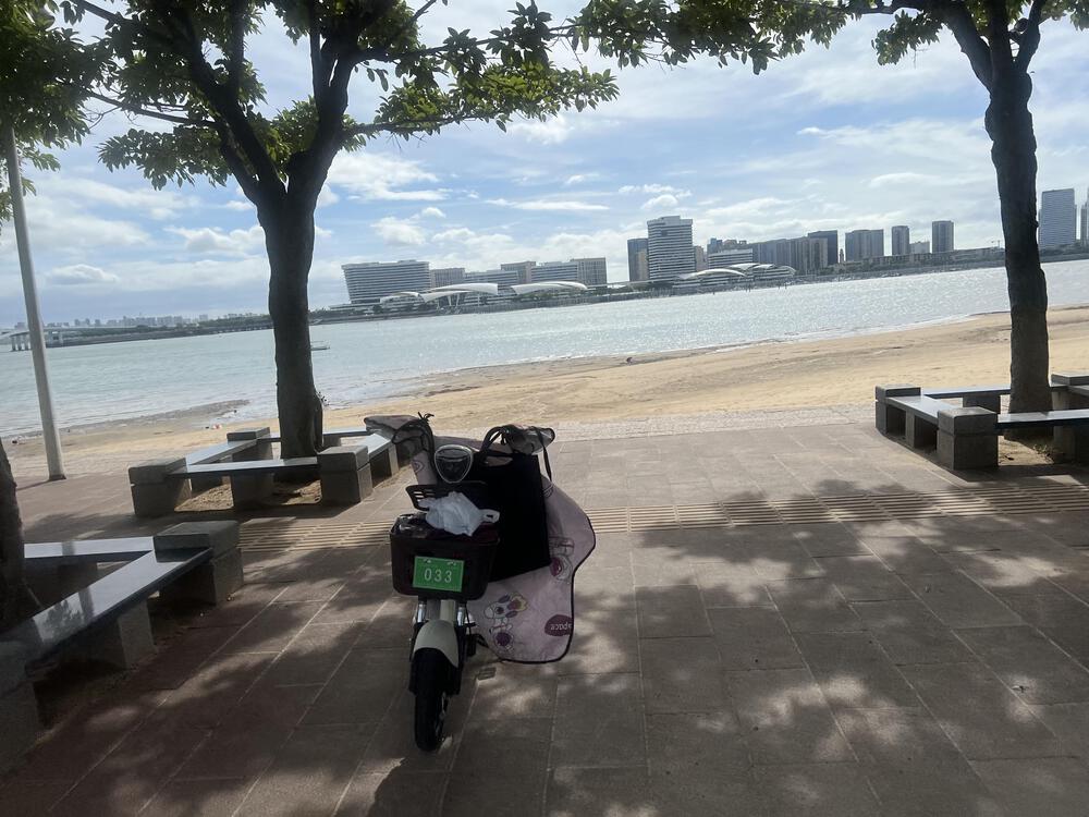 五縁湾のベイエリアは砂浜一帯で潮干狩りを楽しむ家族連れが見られたが、卓球台が橋の下の日陰エリアに設けられているなど中国らしい風情もある。