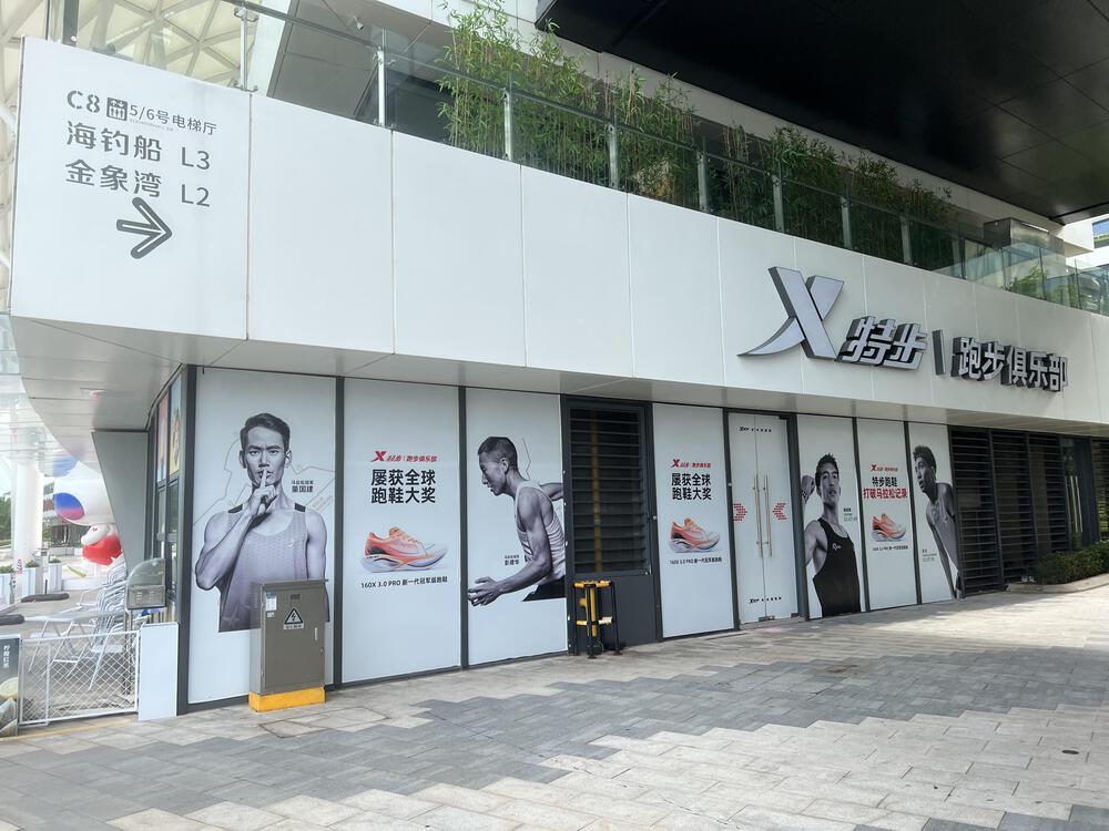 東岸の先にはショッピングエリアがあり、中国のスポーツブランドの特歩(Xtep)のお店の跑步俱乐部(ランニングクラブ)の文字が目に入る。まるで横浜のような雰囲気でベイサイドでの練習会が盛んなようだ。
