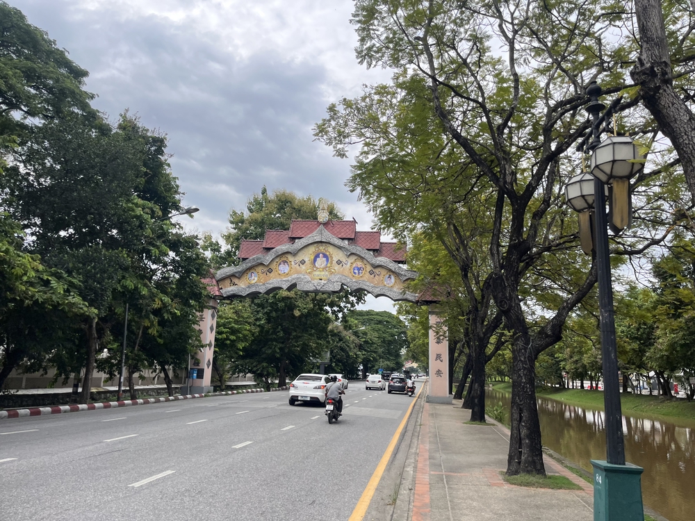 ターペー門の外側を通るコースです。内門と同じく交通量は多いですが、人の通りは内門に比べれば少ないです。信号はないものの、内門のコースと同じく、外門と内門を繋ぐ箇所の通行は車の往来をよく確認しながら行ってください。