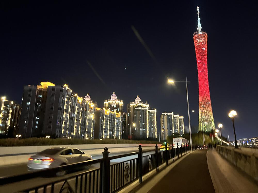 この辺りは香港の夜景をコンパクトにした感じで、スカイツリーにそっくりな広州タワーと海心橋の最強コンボで良い雰囲気の場所です。