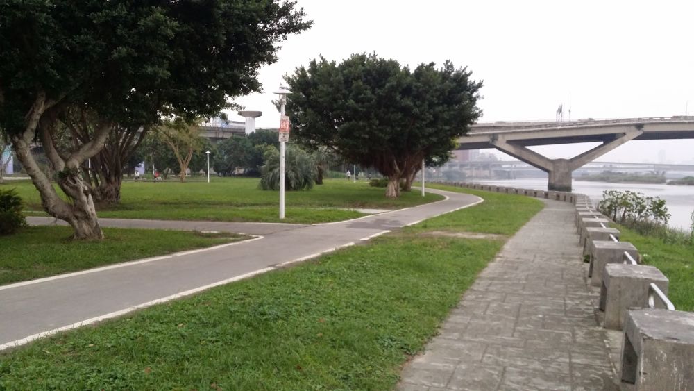 川沿いにずっと自転車道と歩道が整備されているので、お好きなところで折り返して距離を調整してください。防水壁をくぐれる水門はあまり多くありませんので、大稲埕碼頭以外から市内に戻れる場所は写真の地図などを参照してください。コースの折り返し地点である桂林路付近にも水門があります。