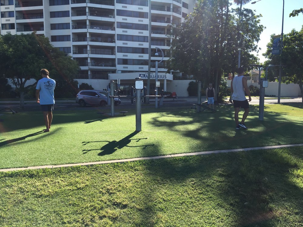途中公共の屋外ジムエリアが数カ所あり、飲料水が補充できます。