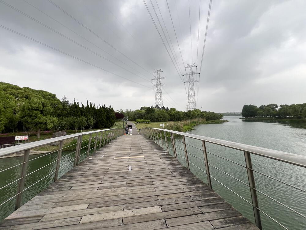 江蘇省・蘇州園区の水辺の公園。憩いの場所なので人気の多い時間帯には高速走行にあまり向いていません。1周3.6km。