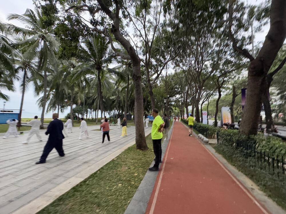 遊歩道は信号がなくノンストップで進むことができる。遊歩道の隣には、ビーチもあるのでビーチランやアイシングもできる。また、海岸線沿いの車道では毎年12月下旬に海南三亜マラソンが開催され盛り上がる。