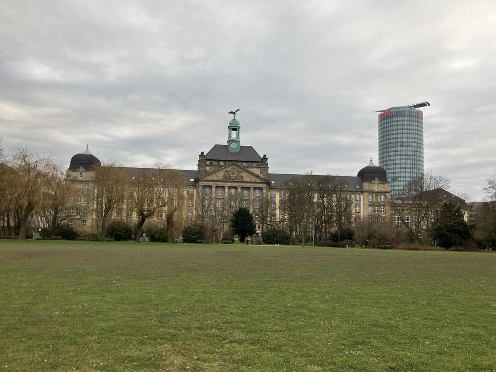 デュッセルドルフの街並みとライン川沿いを走るコース