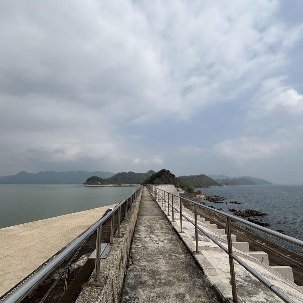 海に造られたダムの周りを、左に淡水、右に海水を見ながら進む。