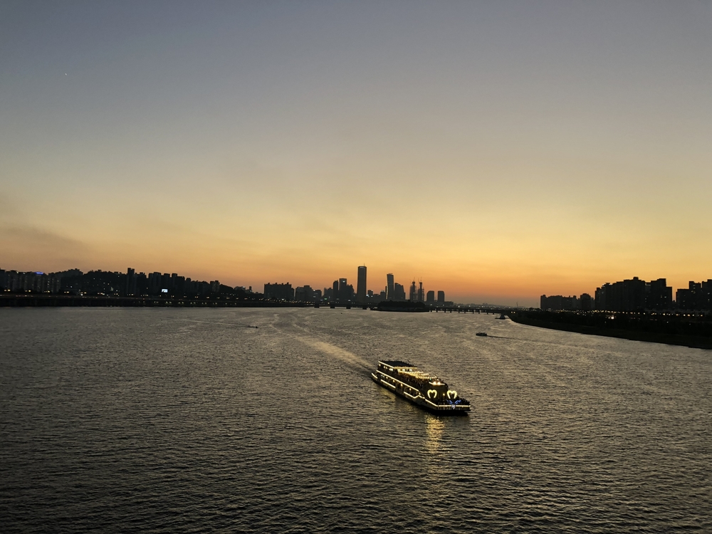 二村洞から銅雀大橋を渡って盤浦大橋まで東に向かって川沿い走り、盤浦大橋を渡って再び漢江北側へ。