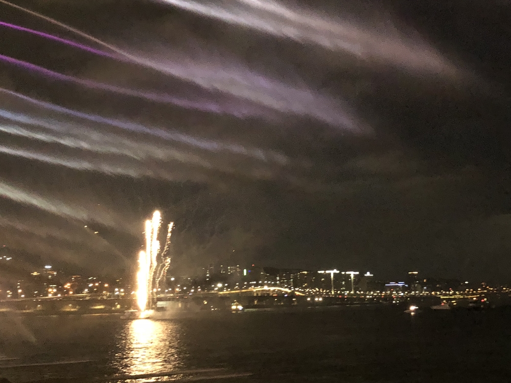 また盤浦大橋南側には芝生スペースがあり、ピクニックの人が大勢います。夏場は夜8:00頃でも盛況です。