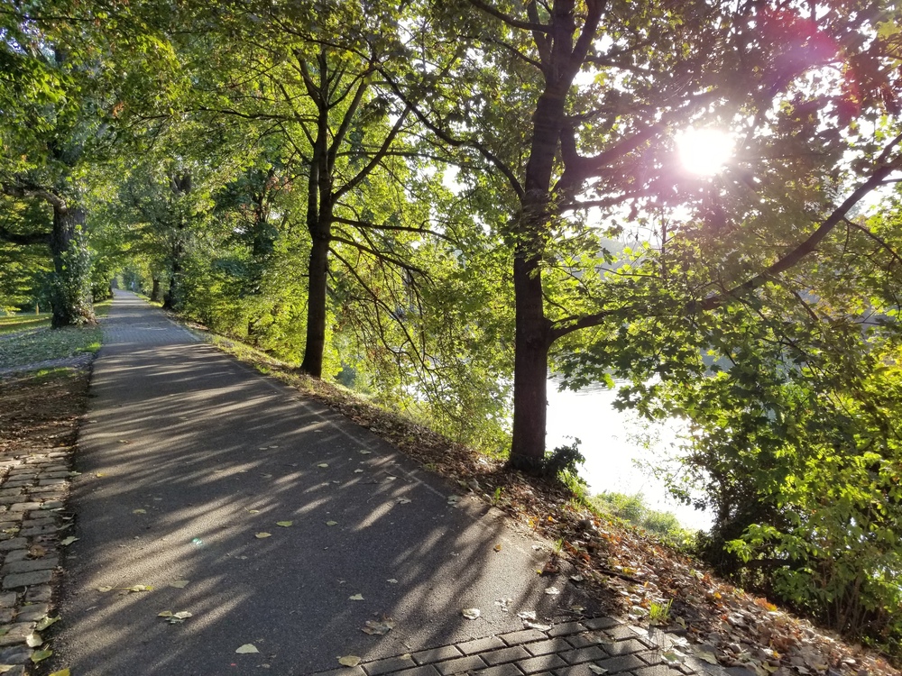 街中の丘にもまだぶどう畑が残る一角を走り抜けて、市内を流れるネッカー川のほとりを走りに行ってみました。