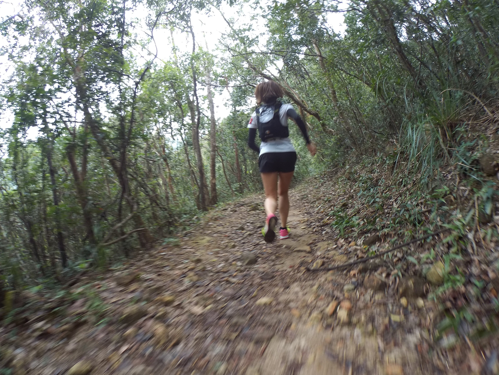 Partly dirt trial and half Road, trees inside the concrete jungle on HK island.