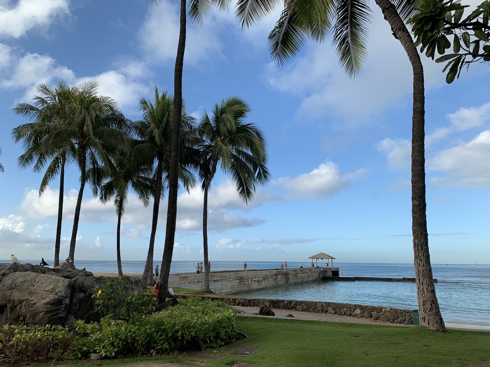 デュークカハナモク像をスタートし、カピオラニ公園付近まで行き、川沿いをゆっくり走りつつ、帰りはカラカウア通りのお店を見ながら戻ってきます。
