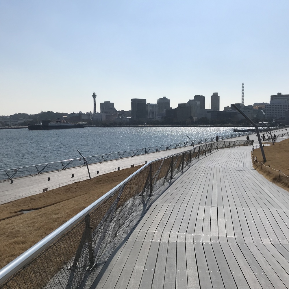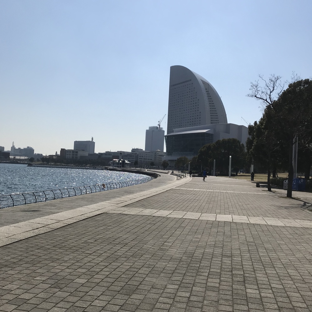 ポートサイドからみなとみらい、大桟橋を経て山下公園折り返し。景色いいです。でも、風強し。