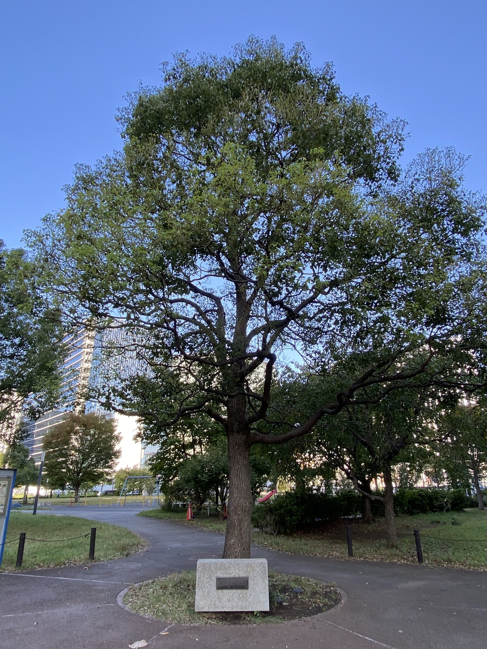 2つめの錨は、右折したところの少し先、左手の公園のようなエリアにあります。赤茶色の少し大きめの錨です。みなとみらいセンタービルの工事中に発掘されたものとのことで、錨の主は陸軍航空母艦「山汐丸」だそう。