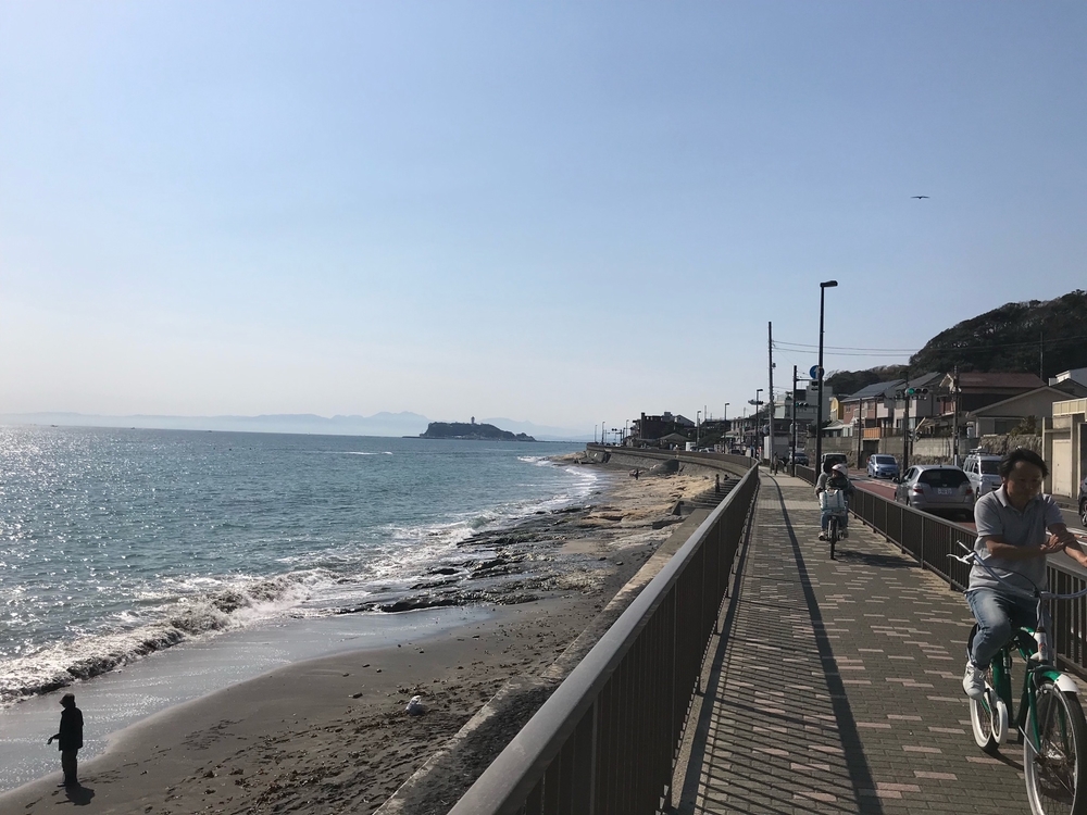 河川敷を走り海岸線に出た後は、海沿いを走れます。稲村ヶ崎、江ノ島、鵠沼を通り、辻堂駅ゴール。