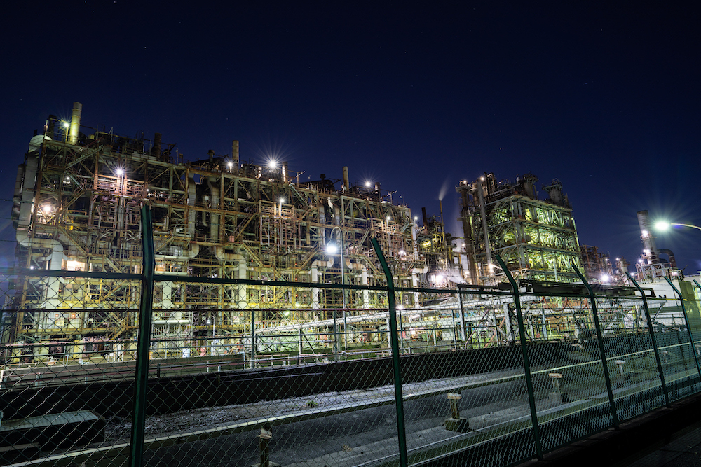 パイプや排気ダクトなど大迫力のその姿に非日常感を感じるには間違いなし。遠目にこれらの工場を撮影するのは大丈夫ですが、フェンスに近付いての撮影は禁じられています。