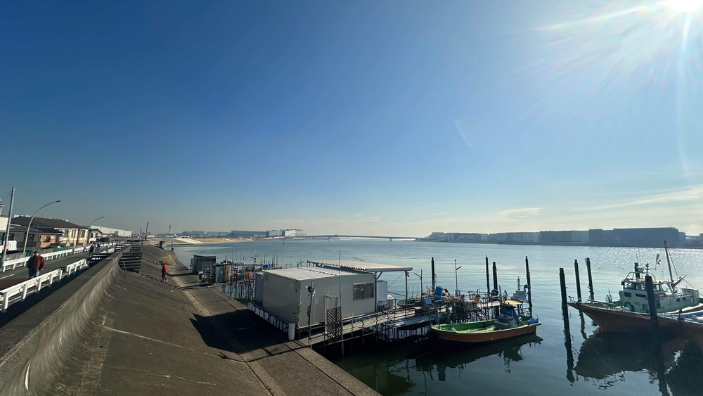 二子新地からスタートして多摩川沿いをひたすら多摩川大橋まで。川沿いを走り続けるのも飽きるので、一旦川を渡って雑色の商店街へ。あとはひたすらまっすぐ空港へ!朝だと空港で温泉に入れます。