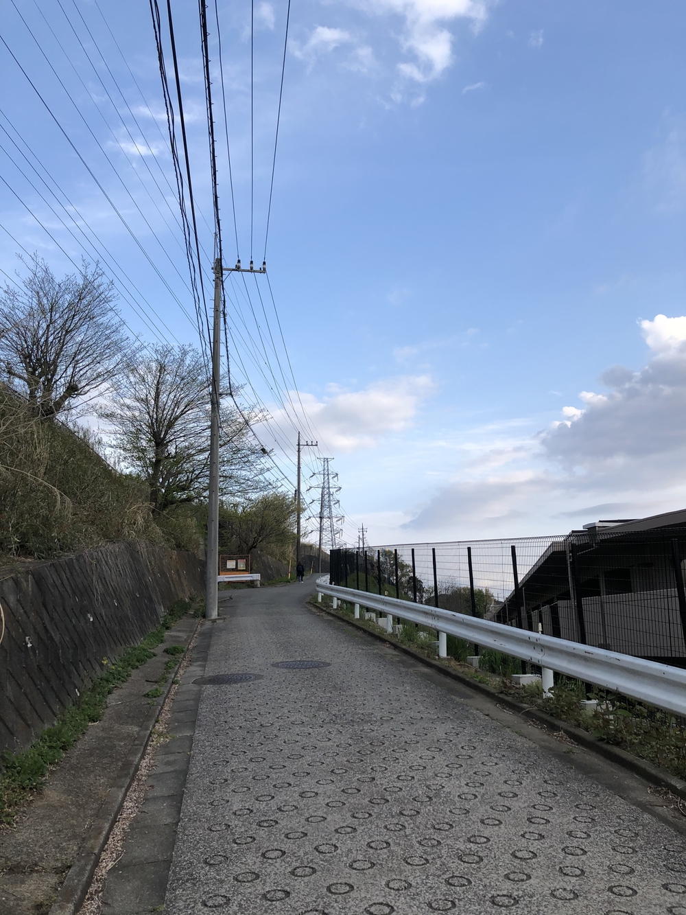 そこから黒川駅の方へロードを走り、小田急多摩線を渡って次のトレイルに進みます。入り口がわかりづらいですが、電柱横の細い道を進みます。
