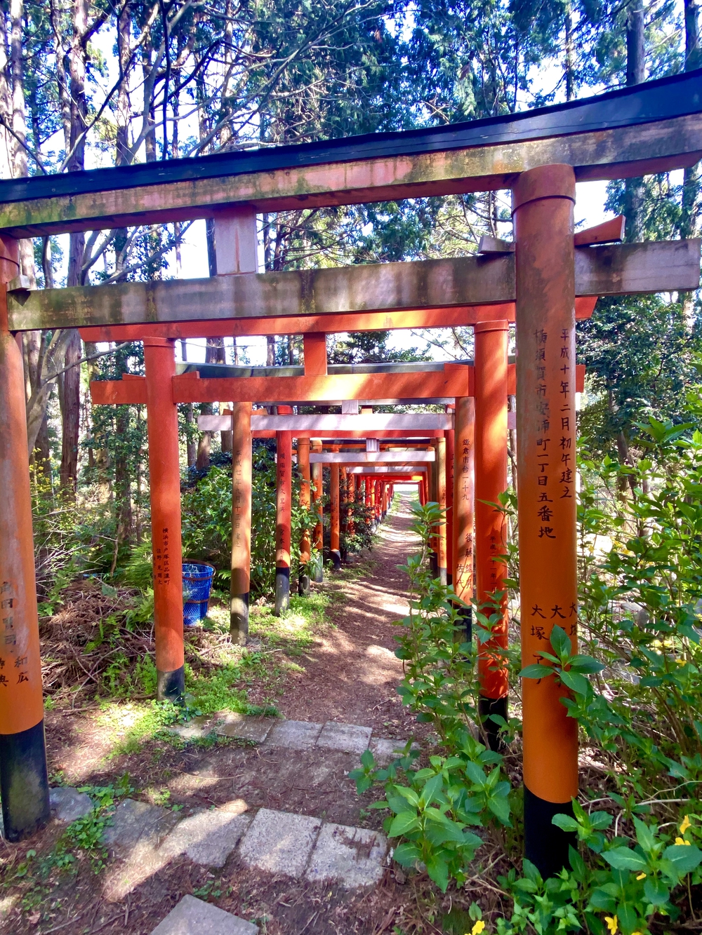 古いもの、新しいもの、すこし傾いてるものなど、ズラリと鳥居が並んでる様は、まるで異世界に