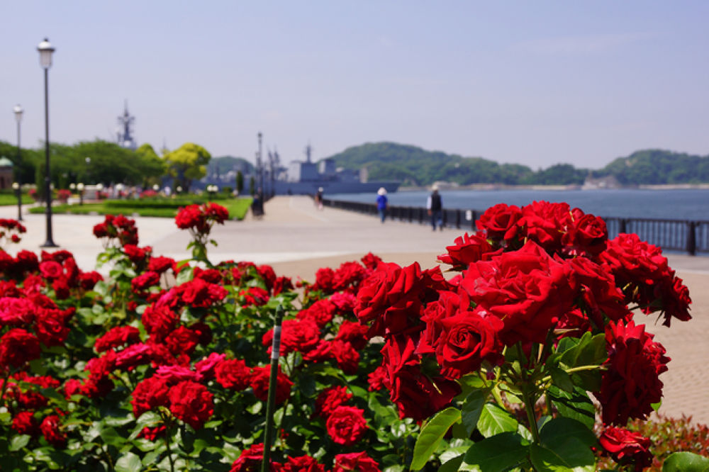 折り返し地点のヴェルニー公園からは、横須賀の観光名所でもある軍港を見ることができます。潜水艦や軍艦に出くわすこともあります♪