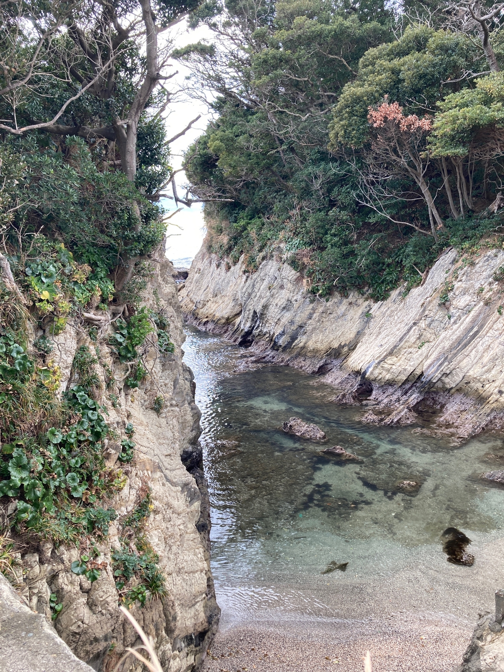 関東ふれあいの道のコースは、国道134号の矢作入口バス停から高等工科学校前バス停までの7.7Kmですが、今回はコース途中の公園、ソレイユの丘に車を停めて、8の字で周回するコースとしました。和田長浜海岸は砂浜を走ります。長浜海岸と荒崎の間は道が崩壊しているので、ソレイユの丘に登り、迂回することになります。荒崎は荒々しい断崖の海岸で、正面には富士山も見える景勝地です。ソレイユの丘には、更衣室、レストラン、温泉施設がありますので、ランニングステーションとして利用できます。ただ私が走った一月は更衣室は閉じていました。