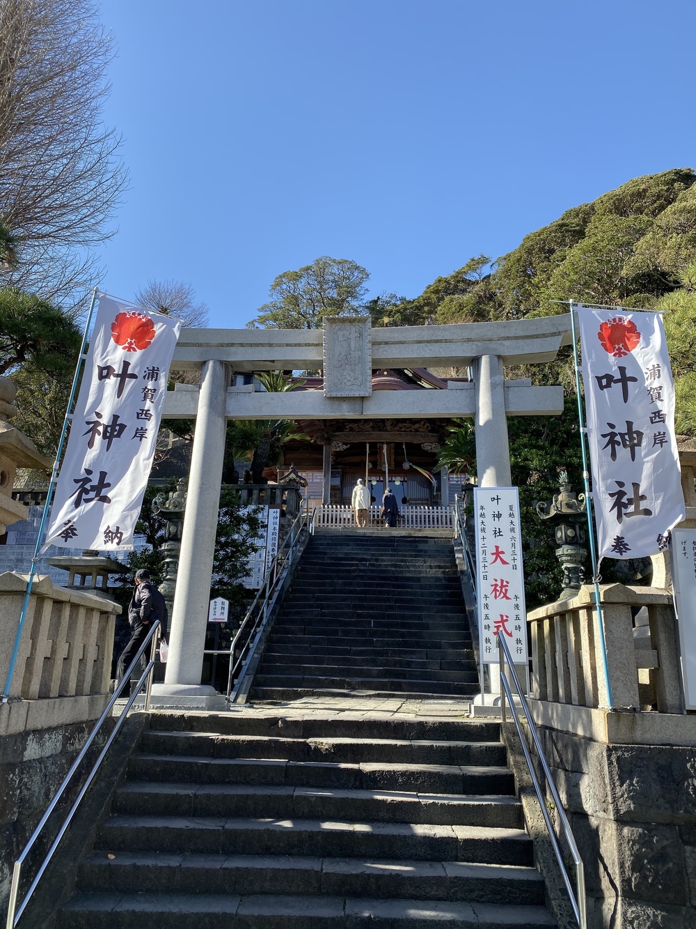 砂浜が綺麗なたたら浜を抜け浦賀方面へ向かい、浦賀港の東岸と西岸のそれぞれにある叶神社にも参拝。それぞれの神社のお守りが揃うと一つのお守りになると言われ、縁結びとしても有名な神社です。