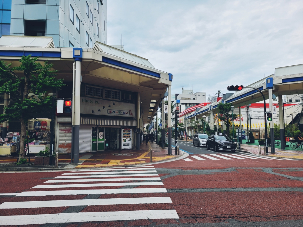 右手に遠くの山々を見ながら、平塚駅前の商店街を抜けて相模湾へ🌊