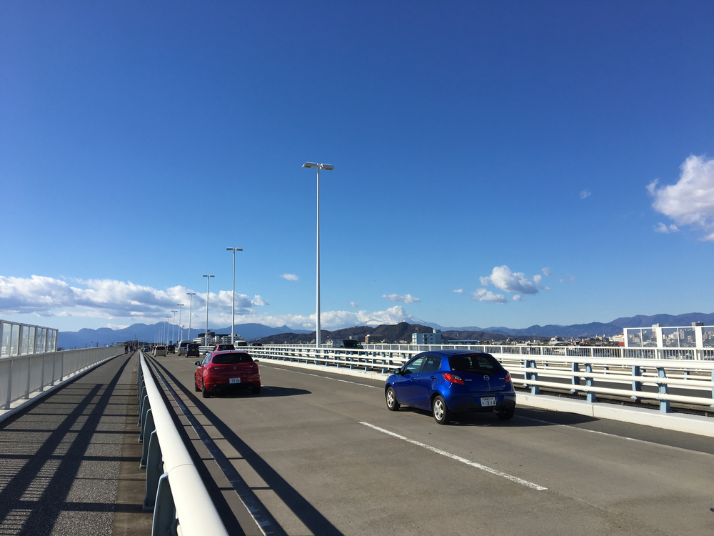 銀河橋では富士山が箱根山と丹沢山塊の隙間に綺麗に全容を現す。そのまま河口まで降りて、国道一号線へ。駅伝選手の走る湘南大橋を (しゅん種の半分のスピードで) 走って今年の走り納めとしました。