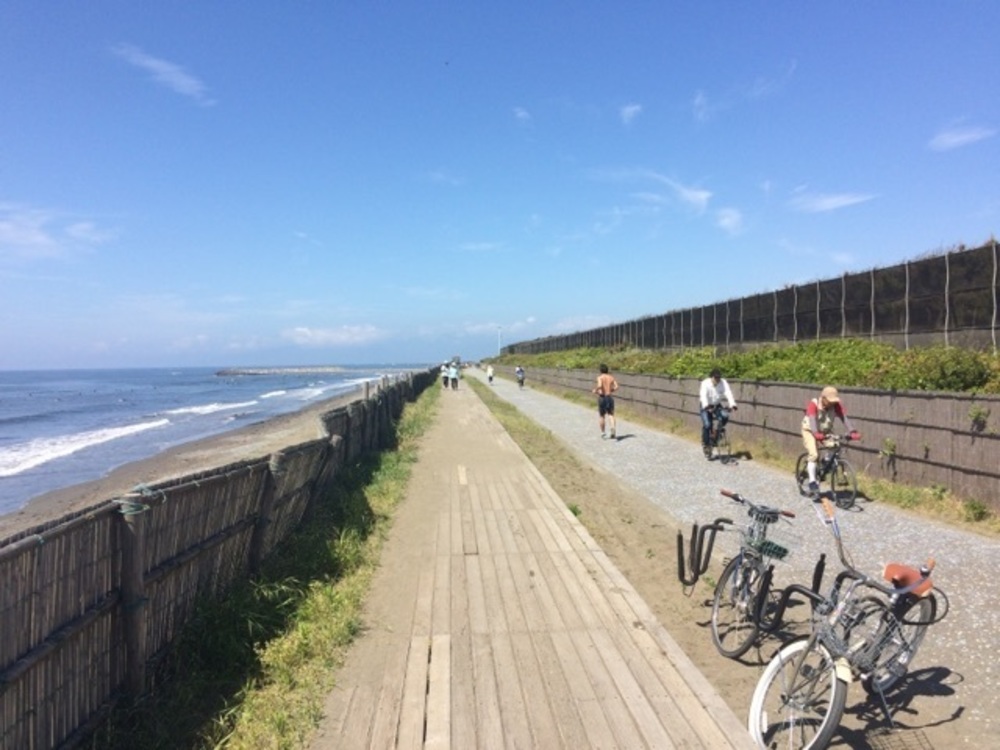 相模川近くの茅ヶ崎・柳島から江の島手前の藤沢・鵠沼海岸まで7.7km続くサイクリングロード。前半は烏帽子岩を右手に江の島をめがけて潮風を受けながら進みます。夏はTシャツを脱いで、上半身裸のビーチスタイルで走っている男性も結構います。日差しが強いので日焼けに注意ですが、いっぱい汗をかいて走る海沿いは最高のランニングコースです。