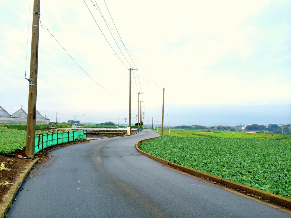 砂浜は直線で約10km程あり、天気次第では対岸に房総半島がくっきりと見えます。 途中、海岸沿いの大通りを脇道に抜け、坂道を登って行くと見渡す限り緑いっぱいのキャベツ畑が現れます。キャベツ・土・朝露などの匂いを感じながら走ると、気持ちがスッキリしてきます。