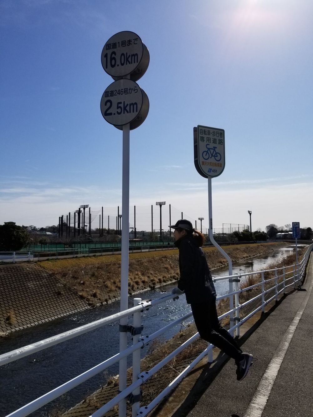 境川。大和スポーツセンターから町田駅までの片道10kmの往復。散歩の人、ランナー、バイカー、ワンちゃん沢山いるけど気持ちよく走れるコース!お約束の給食は町田丸井の外にあるワッフル!